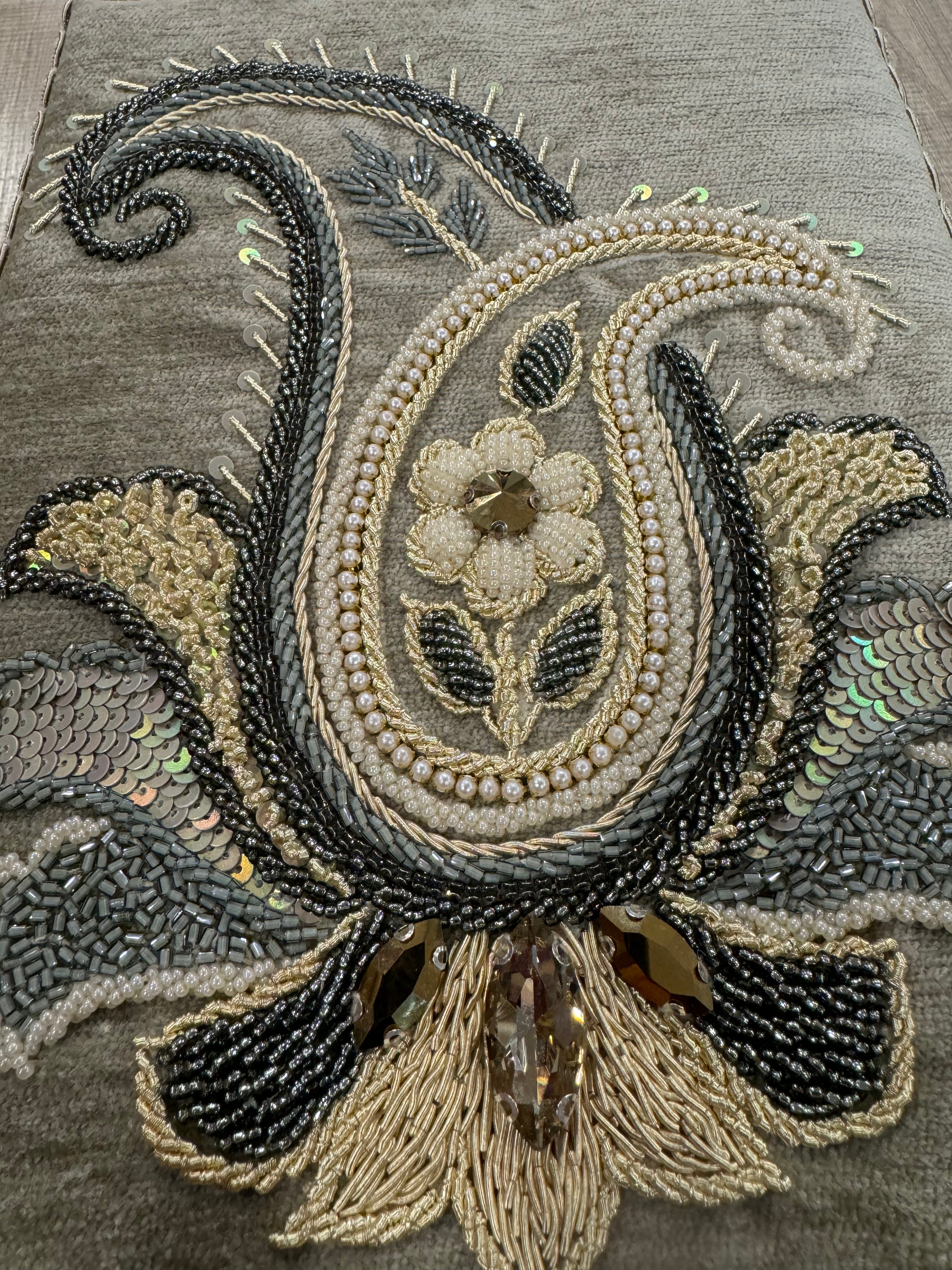 This stunning set of Decorative Storage Boxes combines functionality with luxurious design, making them an ideal addition to any sophisticated interior. The boxes are covered in a premium fabric that offers a soft, neutral elegance, serving as a versatile backdrop for their intricate embellishments.